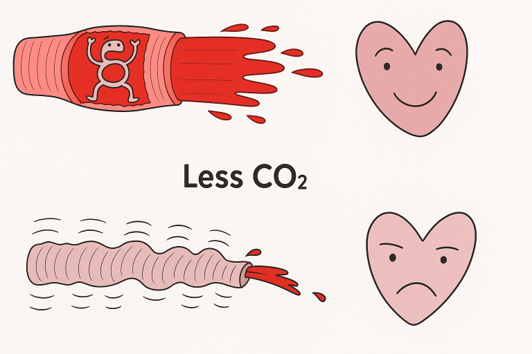 Es gibt noch eine weitere negative Folgeerscheinung eines abgesenkten CO2 Spiegels. Kohlendioxid ist ein wichtiger Gefäßdilatator.